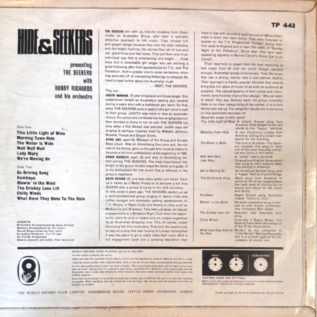 THE SEEKERS : Hide and Seekers – 12″ LP Vinyl 1964