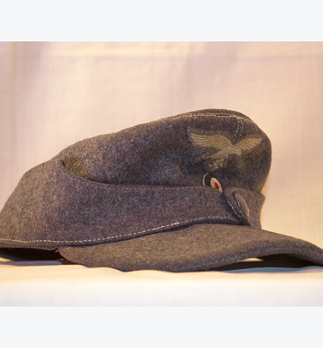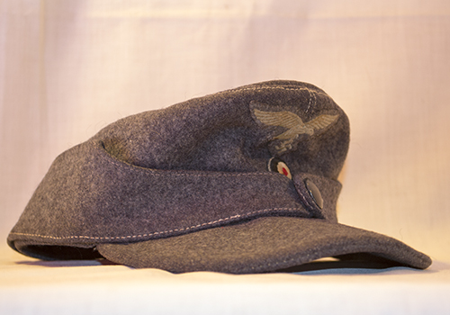 WW2 German Luftwaffe M43 Soft Cap grey fine woolen crown, body and curtain secured by single grey pebble-dash button.