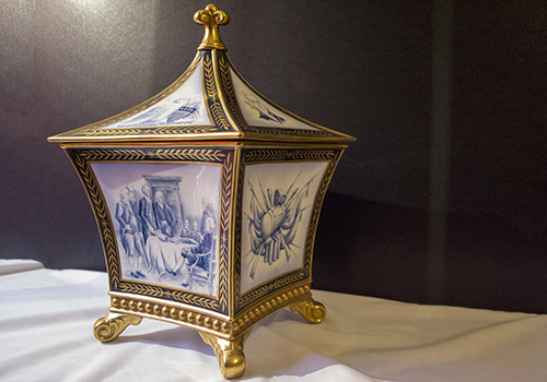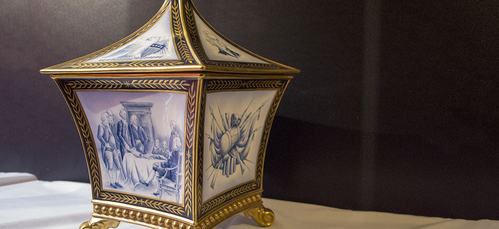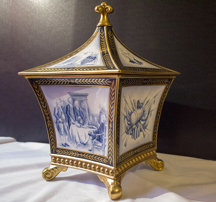 A Caverswall Vase and Cover commemorating the American Bicentennial, number 2 of a Limited Edition of 50, gilt embellished