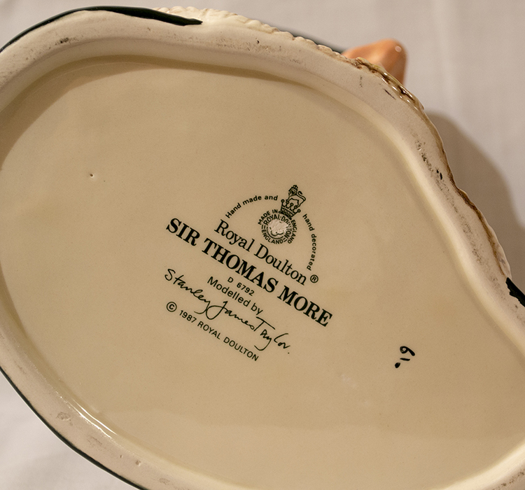 HomeShop AllPottery, Ceramics & GlassRoyal DoultonSir Thomas MoreSir Thomas MorePrice: £55.00 Only 1 left in stock Name Your Price (£) Sir Thomas More quantity Buy now Add to WishlistRemove from Wishlist Add to Wishlist Buy with Need Help? Call Us +44(0) 1782 712747Monday - Friday 17:00 - 13:00 Description Delivery Info Reviews (0) Description Royal Doulton Sir Thomas More – D6792 – 2nd Standard and Express delivery services are available for all items. Shipping costs are calculated at the checkout page (after delivery option & destination confirmation). Tracking is available for all delivery options. Items are delivered during standard business hours. Reviews There are no reviews yet. Be the first to review “Sir Thomas More” Cancel replyYour email address will not be published. Required fields are marked *Name * Email * Save my name, email, and website in this browser for the next time I comment. Your rating * Rate… Perfect Good Average Not that bad Very poor Your review * I agree that my submitted data is being collected and stored. Related products Add to WishlistRemove from Wishlist Add to Wishlist Japanese Nippon Moriage Vase Price: £200.00 Buy now Add to WishlistRemove from Wishlist Add to Wishlist French Limoges Porcelain Vase Price: £250.00 Buy now Out of stock Add to WishlistRemove from Wishlist Add to Wishlist Sir Francis Drake – D6660 Price: £20.00 Read more Out of stock Add to WishlistRemove from Wishlist Add to Wishlist Jester wall mask – HN1630 Price: £450.00 Read more Add to WishlistRemove from Wishlist Add to Wishlist Large character jug Duke of Wellington – D6848 Price: £125.00 Buy now Add to WishlistRemove from Wishlist Add to Wishlist Large Chinese Hand Painted Satsuma Vase Price: £250.00 Buy now Out of stock Add to WishlistRemove from Wishlist Add to Wishlist America’s Bicentennial Cup – Limited Edition Price: £250.00 Read more Out of stock Add to WishlistRemove from Wishlist Add to Wishlist American Bicentennial Vase Price: £420.00 Read more Add to WishlistRemove from Wishlist Add to Wishlist Antique Royal Doulton Art Nouveau Gilt Circle Vase Raised Foliate Decoration Price: £175.00 Buy now